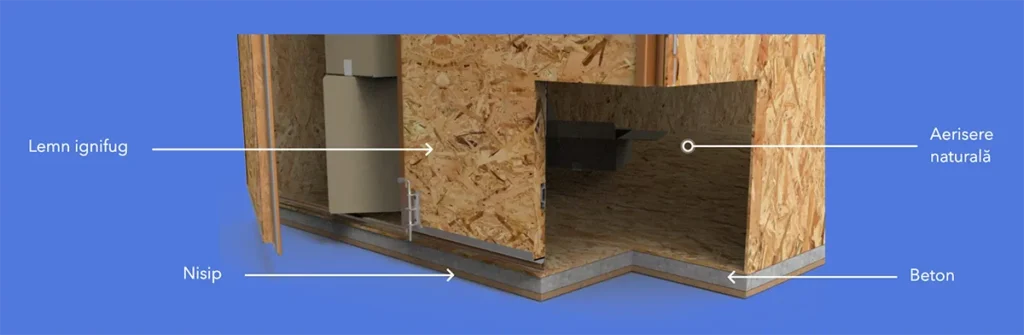 Boxele de depozitoare sunt construite in interiorul halelor, sunt din lemn ignifug (osb), iar jos am turnat ciment, apoi nisip, apoi osb. Circularea aerului este facuta intr-un mod natural; nu exista umezeala, mucegai, mirosuri etc. Deratizarea este facuta lunar!